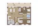 В проекте предусмотрено три спальни, что делает его идеальным выбором для семей с детьми или тех, кто любит принимать гостей. Наличие одной ванной комнаты обеспечивает удобство использования пространства.